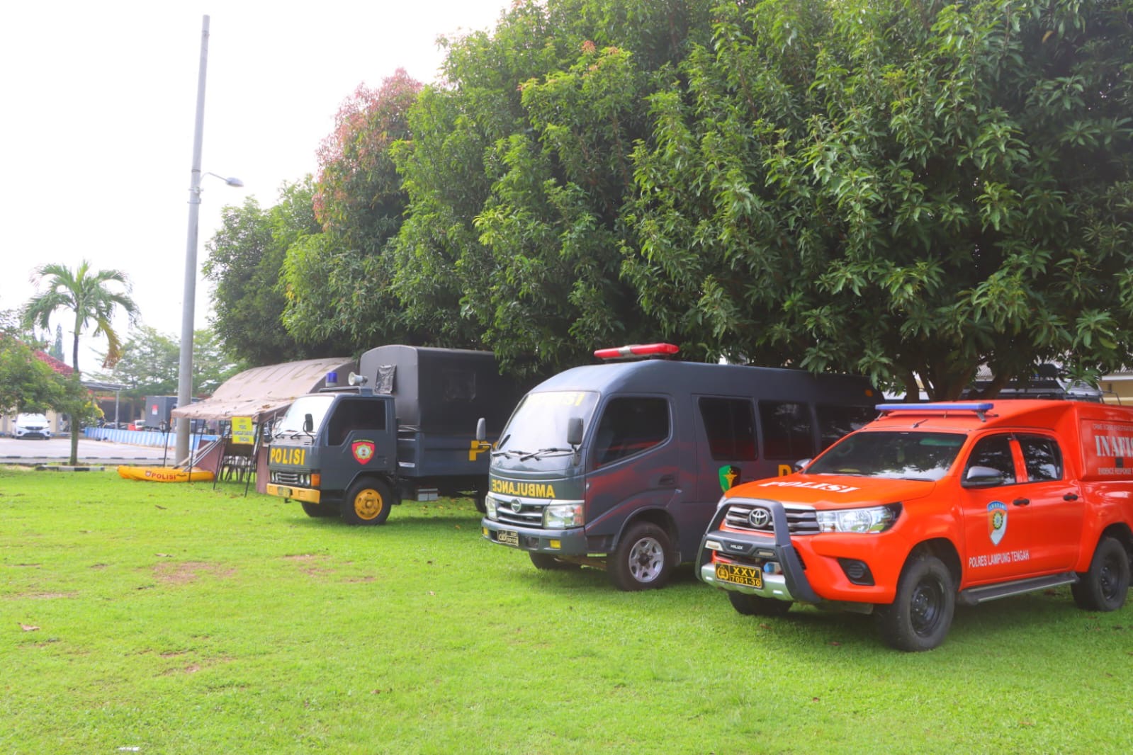 Posko utama berlokasi di Mapolres Lampung Tengah, dilengkapi sarana pendukung seperti kendaraan operasional, gergaji mesin, serta perahu karet untuk evakuasi maupun penanganan darurat.