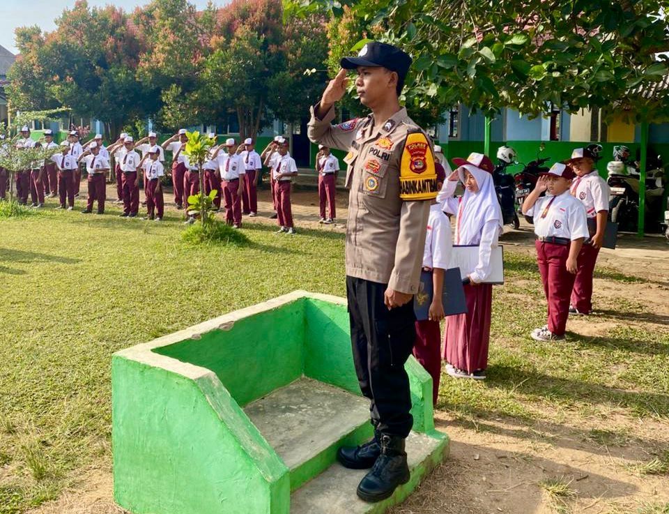 Bhabinkamtibmas Polsek Trimurjo Bina Generasi Muda Lewat Upacara Bendera di Sekolah