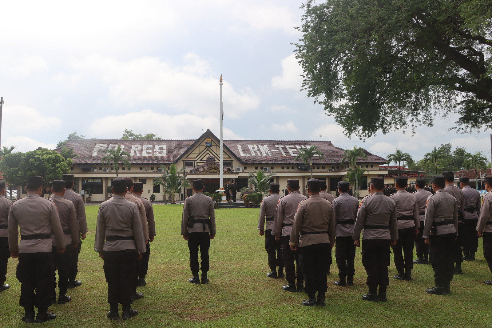 Kegiatan yang berlangsung dengan khidmat dan penuh semangat kebangsaan ini diikuti oleh para pejabat utama Polres Lampung Tengah, Kapolsek, personel Polri, dan ASN.