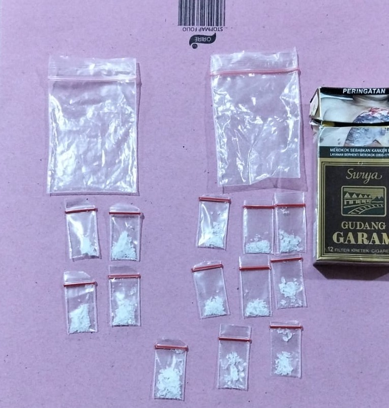 Namun, berkat kesigapan petugas di lapangan, pelaku berhasil diamankan beserta barang bukti berupa 1 bungkus rokok Surya 12 yang di dalamnya berisi 13 plastik klip bening berisi diduga narkotika jenis sabu, yang disimpan di saku celana depan sebelah kiri pelaku.
