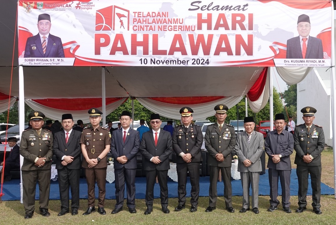 Dengan mengusung tema “Teladani Pahlawanmu, Cintai Negerimu” Jajaran Polres Lampung Tengah, Polda Lampung menggelar upacara peringatan Hari Pahlawan di halaman Mapolres setempat, Minggu (10/11/24) pagi.