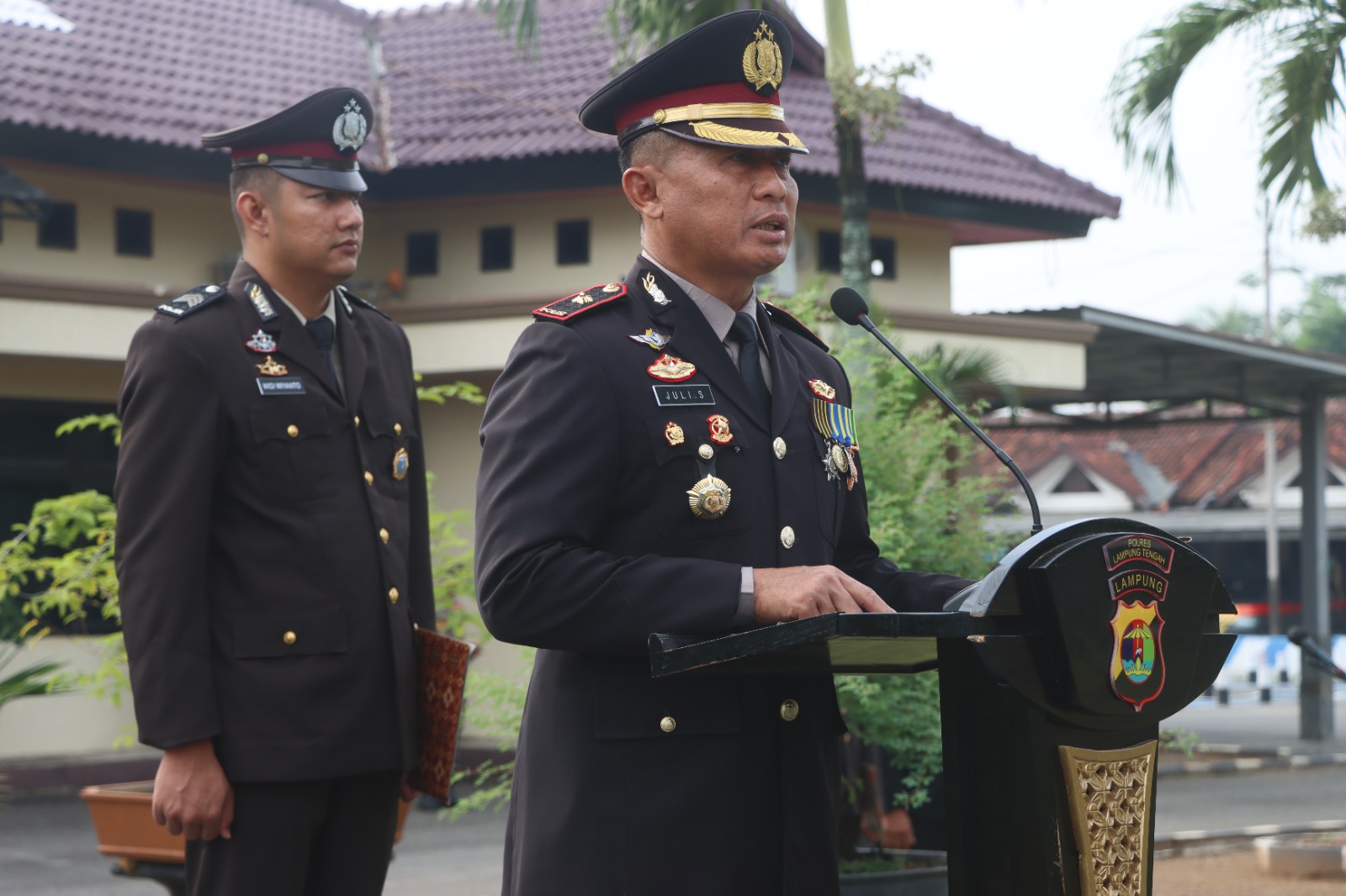 Upacara peringatan yang berlangsung dengan khidmat ini dipimpin oleh Wakapolres Kompol, Juli Sundara, S.Pd mewakili Kapolres Lampung Tengah, AKBP Andik Purnomo Sigit, S.H., S.I.K., M.M dengan diikuti para PJU, Kapolsek, Perwira dan personel serta ASN Polres Lampung Tengah.