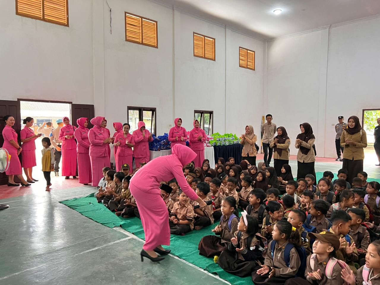 Keceriaan semakin lengkap saat anak-anak menerima bingkisan dari Kapolsek beserta Ibu Bhayangkari, sebelum kegiatan ditutup dengan sesi foto bersama.