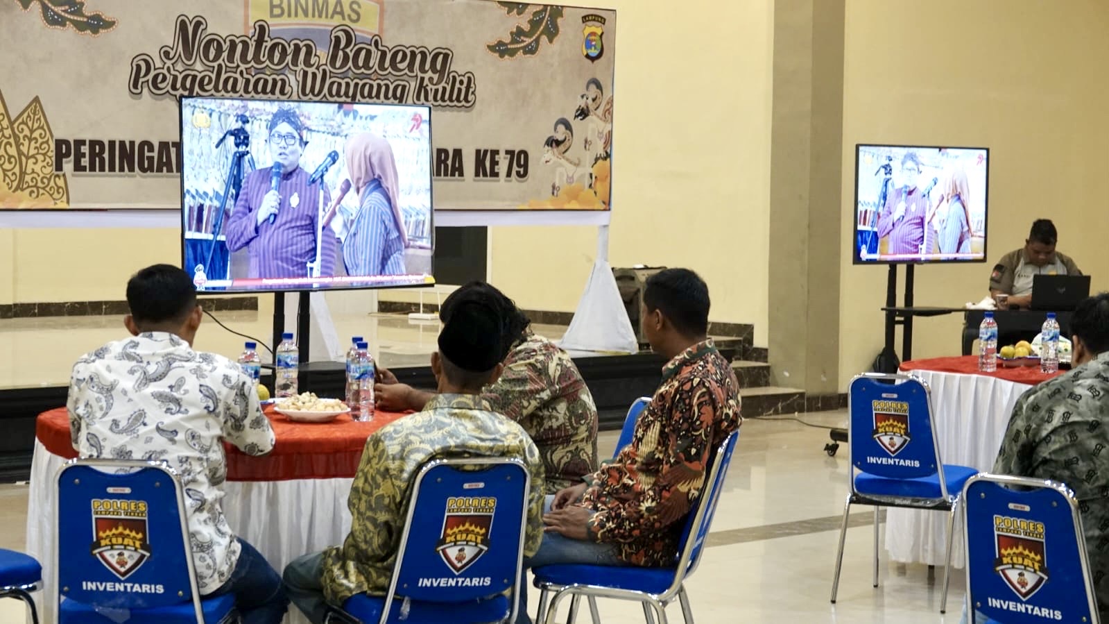 Lampung Tengah – Dalam rangka memeriahkan Hari Bhayangkara ke-79, Polres Lampung Tengah menggelar acara nonton bareng (nobar) pagelaran wayang kulit bertajuk “Amarta Binangun”.