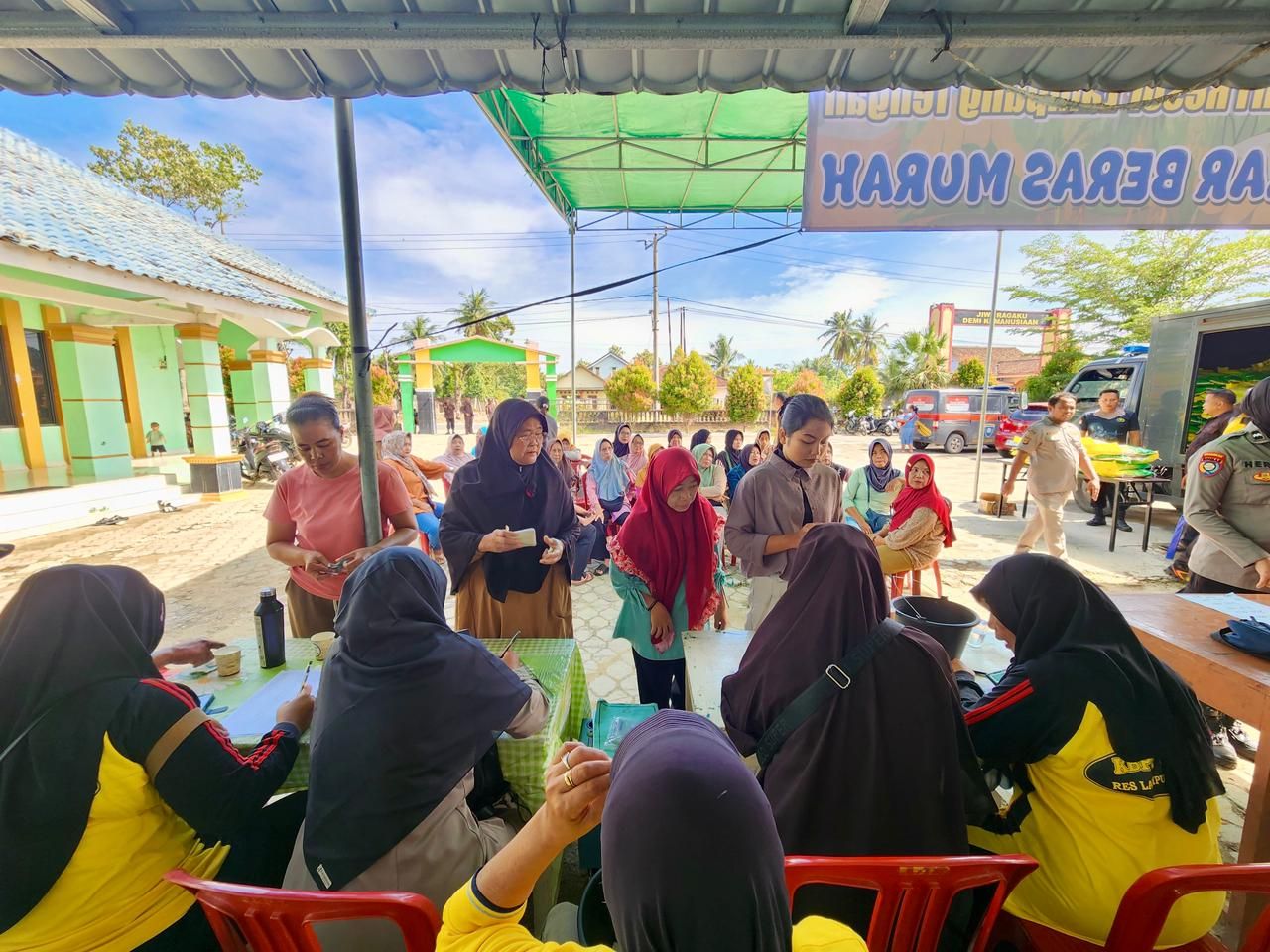 Lampung Tengah – Warga terlihat antusias memadati area Trans Polri Jaya Guna 2 Komering Putih Kecamatan Gunung Sugih pada Senin pagi (27/10/25), dalam rangka Gerakan Pangan Murah yang digelar oleh Polres Lampung Tengah bersama Keluarga Besar Putra Putri (KBPP) Polri.