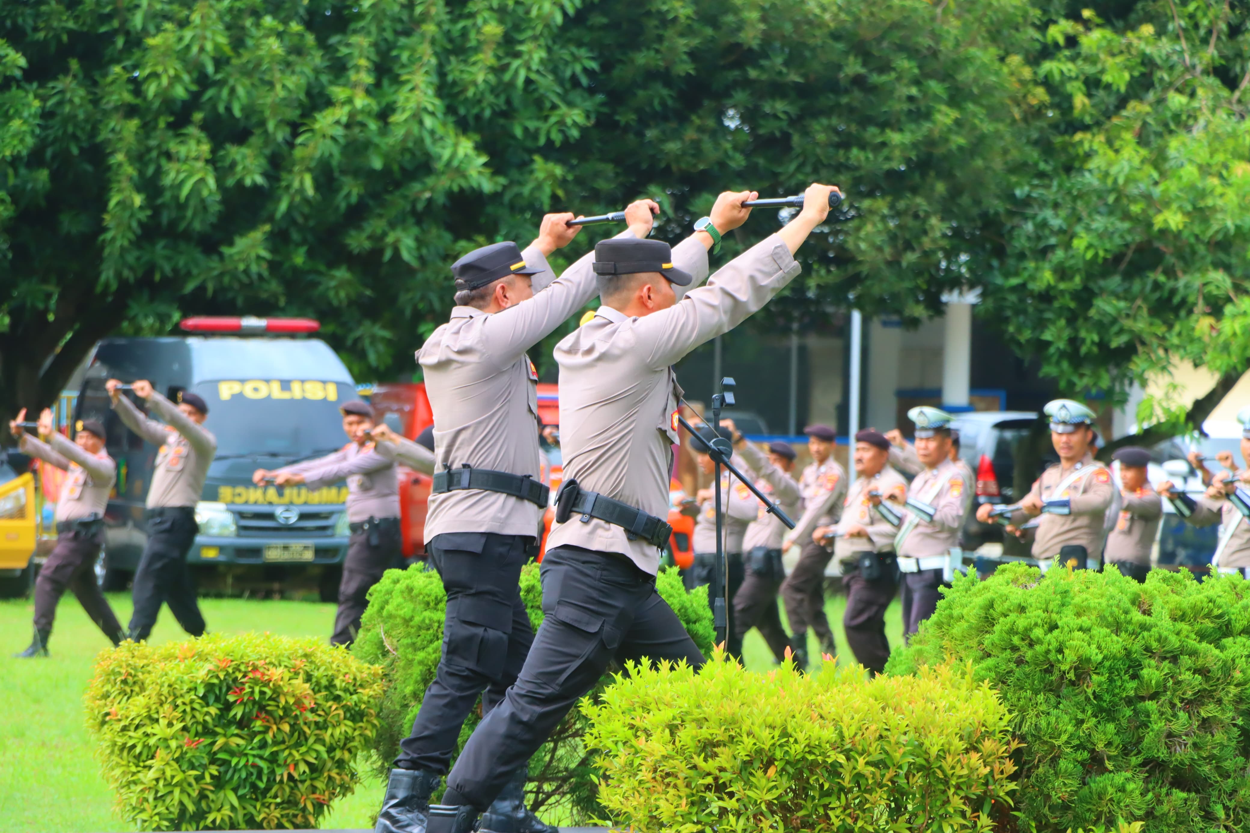 Usai pelaksanaan apel, kegiatan dilanjutkan dengan latihan drill tongkat Polri, yang bertujuan untuk meningkatkan kemampuan dan ketangkasan anggota dalam penggunaan sarana pendukung pengendalian massa serta penanganan gangguan keamanan.